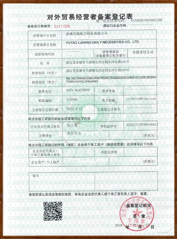 Yuyao Luhang Daily Necessities Co., Ltd.